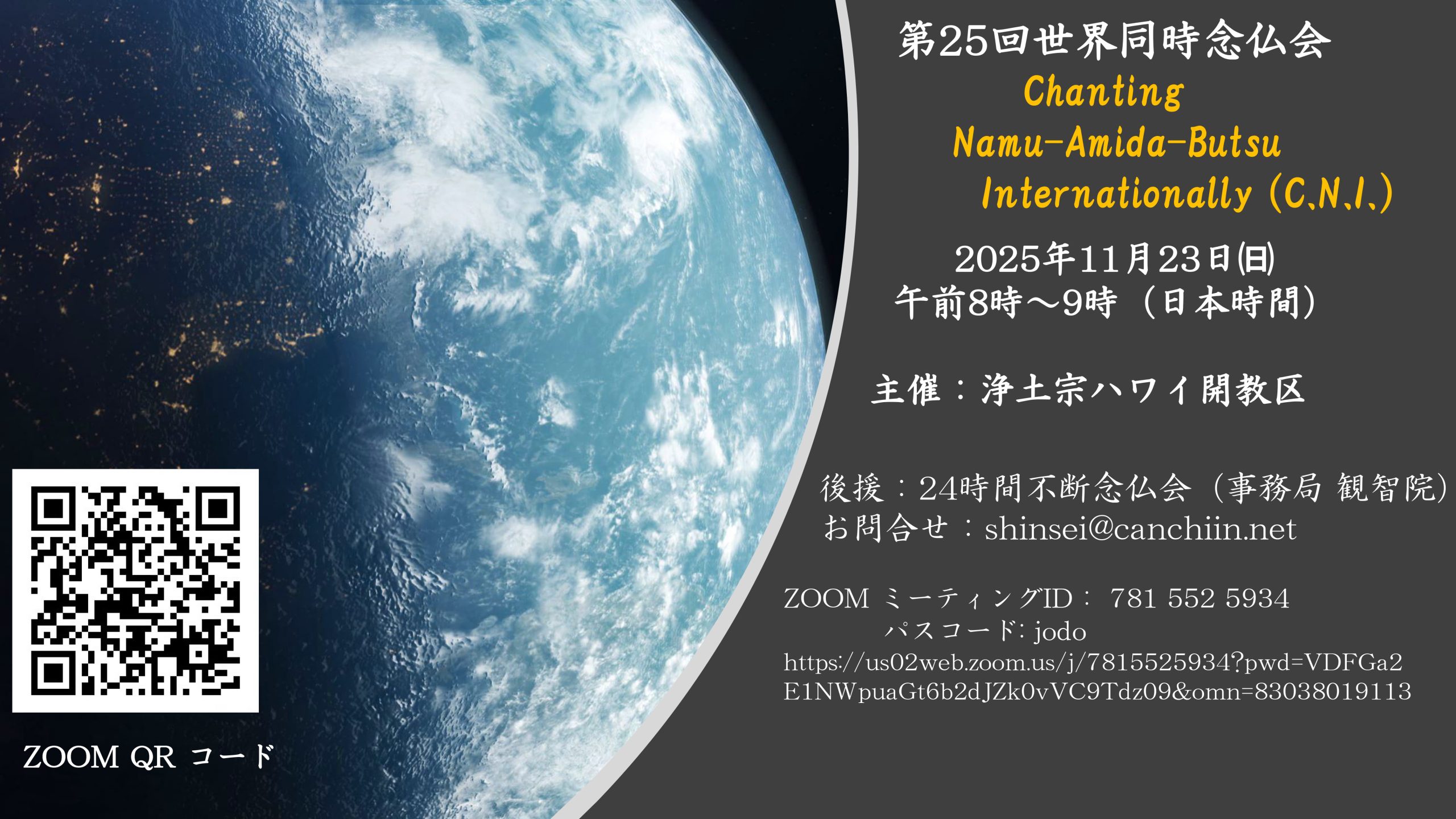 また本年4月に念仏を更に世界に広める目的をもって、「C.N.I(世界同時念仏会)」が「一般社団法人Chanting Namu Amida Butsu International Association」(略称CNIA)と登録認可されました。