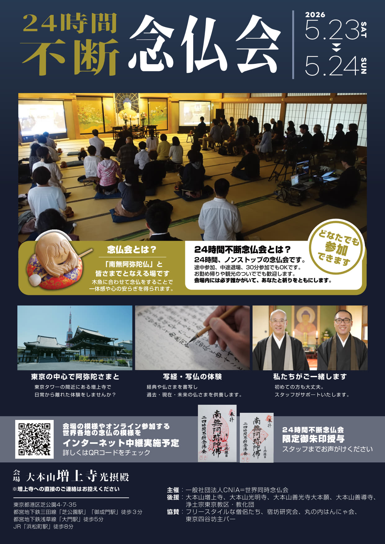 - ※増上寺への問合せはご遠慮下さい。連絡は必ず24時間不断念仏会事務局へお願いいたします。